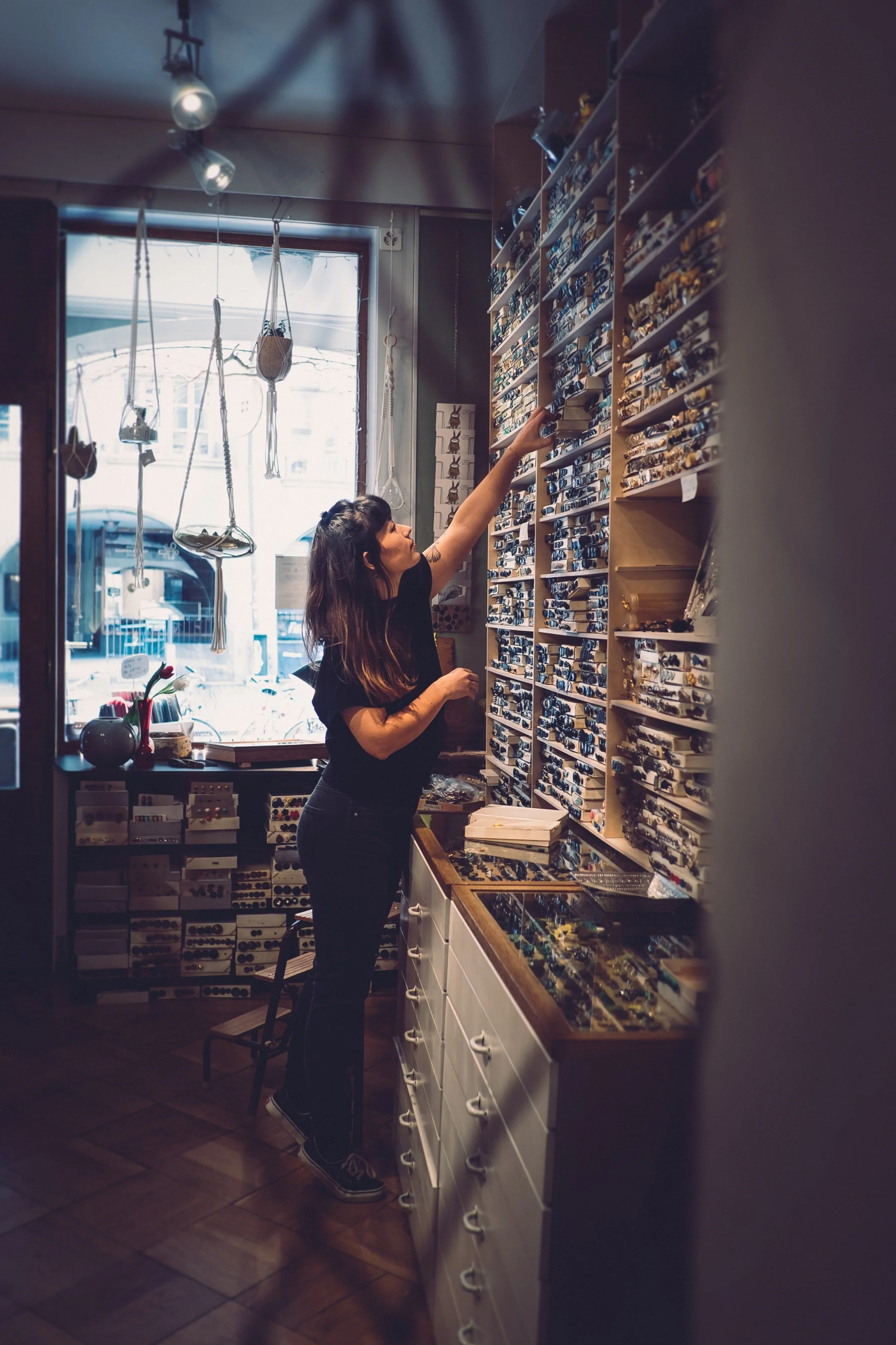 Einem Kosmos gleich fügen sich bei uns verschiedenste Sachen und Sächeli zu einem grossen, funkelnden Ganzen. Oft aus dem hauseigenen Atelier, immer aber aus bekannten und nachhaltig kreierenden Kleinmanufakturen. Umgeben von abertausenden Knöpfen, Taschen und Täschchen, Kleidern, Schmuck, Postern und Postkarten, Keramik, Haarklammern, Kerzen und anderen kleinen und grossen Schätzen halten wir Inspiration, Kreativität und Austausch hoch, für unsere Kundschaft genauso wie für uns selbst.